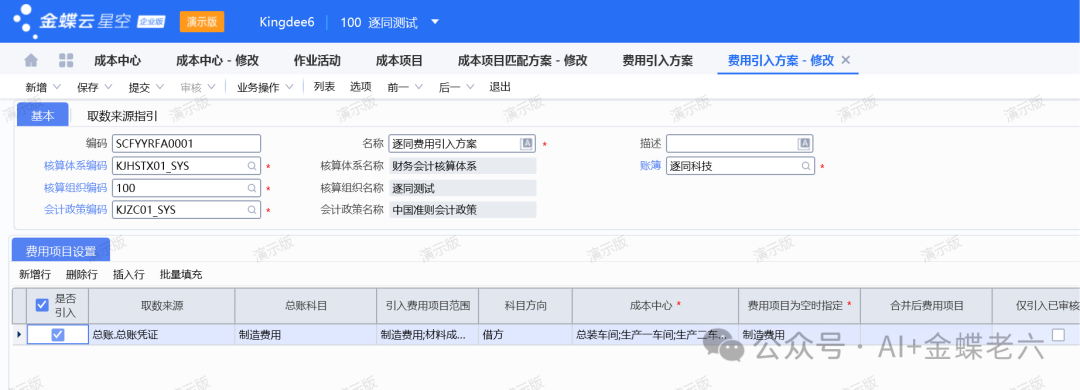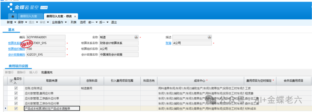 - 費(fèi)用引入主要是為了做費(fèi)用歸集使用,取數(shù)來(lái)源有應(yīng)收、應(yīng)付、固定資產(chǎn)、費(fèi)用報(bào)銷、總賬。企業(yè)最常用的就是總賬的科目數(shù)據(jù),主要是制造費(fèi)用相關(guān)的明細(xì)科目的借方數(shù)據(jù)。如下圖所示:
