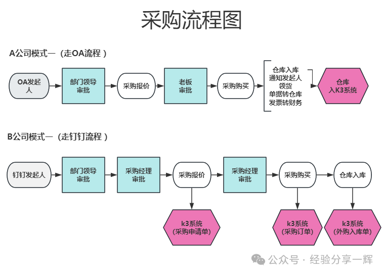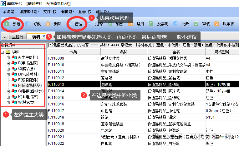 采購入庫篇 分三部份講解: 1、講解公司的采購流程。 2、講解金蝶k3的采購流程。 3、講解金蝶k3的實際操作。 一、公司采購流程 每個公司的采購流程都有所不同,我們例舉兩個公司來講解一下。在圖中我們可以看到: A公司的采購流程:直接走OA審批,老板審批完后,采購購買,貨物到倉庫后,倉庫人員錄(金蝶k3)系統(tǒng),全程采購不需要操作(金蝶k3)系統(tǒng),只需要據(jù)OA系統(tǒng),做好采購工作就可以了。 B公司的采購流程:走的是釘釘審批流程,采購在報價時,要填寫金蝶k3系統(tǒng)的(采購申請單);在購買時,填寫金蝶k3系統(tǒng)的(采購訂單);到貨后,倉庫人員驗收貨物,填寫金蝶k3系統(tǒng)的(外購入庫單);把金蝶的采購入庫分成幾個人來操作。 我們了解自己公司的采購流程就可以了。 二、金蝶k3的采購流程 金蝶k3系統(tǒng)的采購流程是這樣的,舉個例子,我們要在京東采購兩個電腦500W電源,錄(采購申請單)時,我們要填寫(產(chǎn)品信息)。流程到采購訂單時,我們要填寫(價格)和(供貨商信息)。到貨后,倉庫驗貨,填寫(入庫單),沒有問題就產(chǎn)品入庫存,生成記賬發(fā)票,結(jié)束采購流程。 如果產(chǎn)品有問題,要退貨,倉庫再填一張(紅色的入庫單),退庫存和記賬發(fā)票,單據(jù)回到采購訂單狀態(tài),采購重新購買,再走一次入庫流程,或者不買了,采購關(guān)閉單據(jù),結(jié)束采購流程。 注意:金蝶k3系統(tǒng)的單據(jù),分為紅字和藍字,藍字為正數(shù)單據(jù),紅字為負數(shù)單據(jù)。(正常流程是藍色字單據(jù),退款退貨之類的是紅色字單據(jù)) 三、金蝶k3的(采購入庫)實際操作 還是一樣,舉個簡單的例子:要在(京東平臺,采購兩個,電腦500W電源,價格是200元/個),開始我們的表演。 第一、確認有物品和供應(yīng)商的代碼 要在k3系統(tǒng)找到兩個信息,供應(yīng)商(京東),物品(電腦500W電源),如果沒有,我們要自己錄一個。 打開k3系統(tǒng),進入(主控臺)——(系統(tǒng)設(shè)置)——(基礎(chǔ)資料)——(公共資料)——(物料和供應(yīng)商) 新增產(chǎn)品信息,要先選擇左邊的大類,再點右邊的小類,再點新增,一般不建議這樣做,這樣很容易錄錯產(chǎn)品信息的歸類,除非你很了解系統(tǒng)的錄入分類和財務(wù)歸類。我個人建議用管理功能來錄信息。 我們在這里可以看到,產(chǎn)品代碼是(F.130)開頭,物品的(大類)和(小類),產(chǎn)品(存貨科目),(收入),(成本),的歸類等信息,如果我們自己新增,不了解物品的核算歸類,很容易搞錯,到時會影響后面的財務(wù)報表。 所以我們最好是找到同類產(chǎn)品,雙擊進去,(復制)一個同類產(chǎn)品,修改名稱,修改一些你自己知道的參數(shù),一些不了解的參數(shù),不用改,和同類產(chǎn)品一樣就好。 注意:新增這里的參數(shù)設(shè)備 新增代碼自己遞增建議(勾上),隱含非必錄信息這個看自己工作需求,設(shè)置完記的點保存。