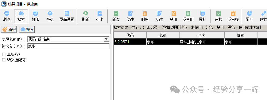 方法一樣,在(主控臺)——(系統(tǒng)設(shè)置)——(基礎(chǔ)資料)——(公共資料)——(供應(yīng)商)——(管理)——搜索(京東)。 一般公司的供應(yīng)商都固定有的,不用新增,用舊的就好,這樣財務(wù)的賬才不會亂。