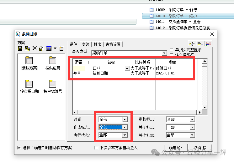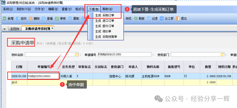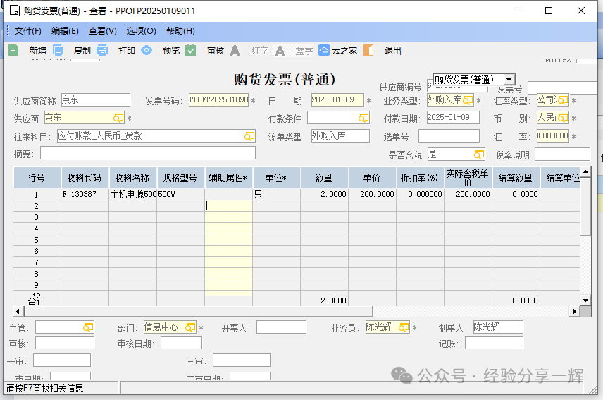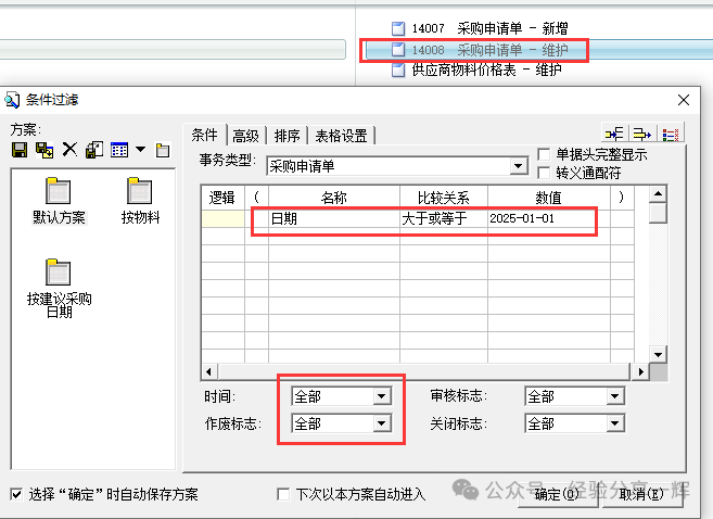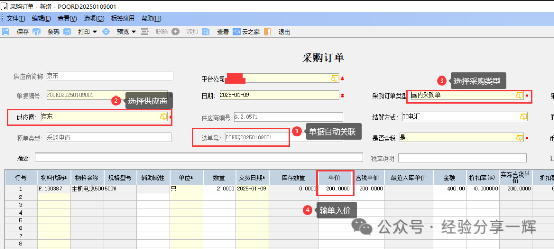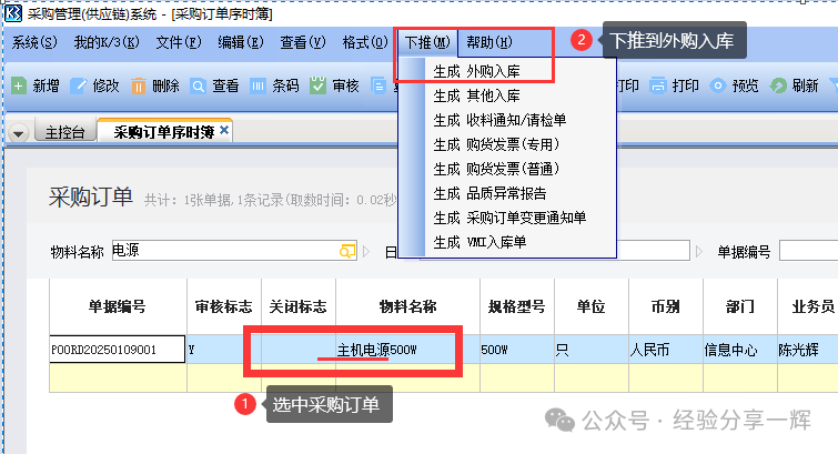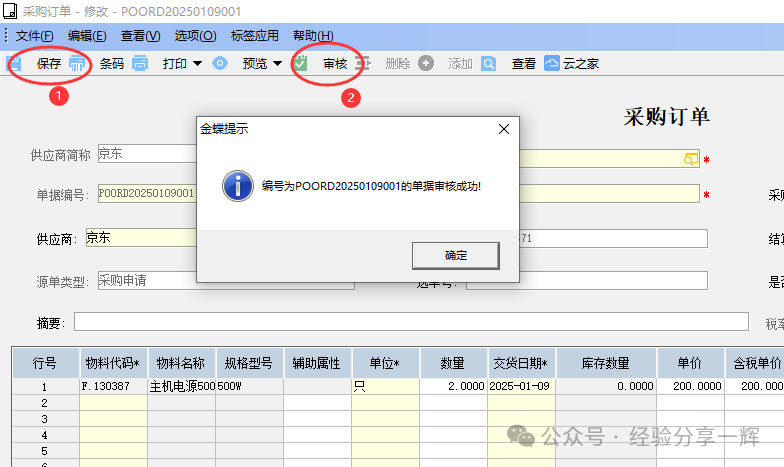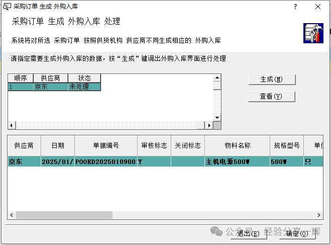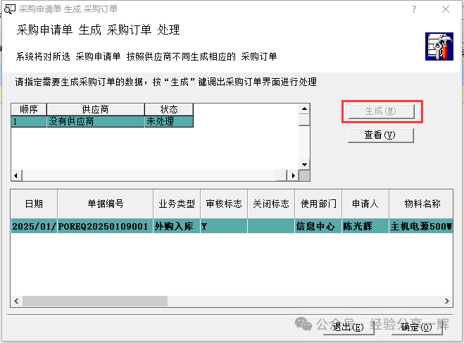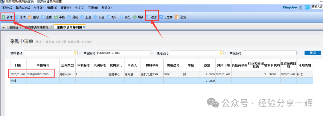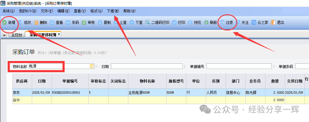 第二、填寫(采購申請單) 在(主控臺)——(供應(yīng)鏈)——(采購管理)——(采購申請)——(采購申請單-新增/維護) 填寫采購申請單,選(公司),業(yè)務(wù)類型(外購入庫),使用部門(信息中心),物料代碼(按F7鍵,查到并選擇要購買的物料代碼或名稱),或者知道代碼,自己(手輸代碼),數(shù)量(記得填一下)。 最后要點(保存),(審核),申請單填寫完成并生效。 注意:如果要修改已(審核)的單,要先把單據(jù)(反審核),才能修改。在上面查看菜單里,有個(反審核)。 再講一下(采購申請單-維護)的功能,點維護,彈出過濾條件。一般我們按日期查(例如:日期,大于或等于,2025-01-01),下面時間和標志,記的選(全部),不然有時會查不到我們想要的單據(jù)。 這是會顯示我們剛剛查詢條件的所有單據(jù),點(新增)就是(采購申請單)功能,點(過濾)就是(修改查詢條件)功能,雙擊單據(jù)就是(打開和修改單據(jù))功能。在這里可以查看并新增或修改單據(jù)。 第三,從(采購申請單)到(采購訂單) 我們先講最簡單的方法,在(采購申請單-維護)介面,選中訂單,按上面的(下推--生成采購訂單)。 點生成:(采購申請單)自動關(guān)聯(lián)生成(采購訂單)。 下推生成的采購訂單有一個好處理,自動關(guān)聯(lián)單據(jù),我們要填寫幾個關(guān)鍵選鍵選項,供應(yīng)商選擇(京東),選擇采購類型(國內(nèi)買的選國內(nèi)采購),填寫價格(200),有黃色的為必填項。 同樣,填完后記得保存,審核。采購訂單完成,單據(jù)到入庫流程。這是最方便的流程。 第二個方法,從主控臺進入,(采購管理)——(采購訂單)——(采購訂單--新增/維護) 進入(新增采購訂單)后,要自己手動選擇對應(yīng)的采購申請單,在源單類型選擇(采購申請單),在選擇號中(按F7鍵,查詢到想找的申請單,選中單號,或者自己手輸單號),這樣才能對應(yīng)到采購申請單。如果是下推生成,就不用自己找關(guān)聯(lián)的單據(jù)。 關(guān)聯(lián)采購申請單后,還要填寫幾個關(guān)鍵選鍵選項,供應(yīng)商選擇(京東),選擇采購類型(國內(nèi)買的選國內(nèi)采購),填寫價格(200),有黃色的為必填項。 再講解一下(采購訂單--維護)的功能。點開后彈出查詢條件,可以多條過濾,注意:下面最好選全部,不然有時會查詢不到你要的單據(jù)。 同樣,進去后有(新增),(審核),(查詢過濾),(下推)等功能,和采購申請單的功能一樣。 第四、從(采購訂單)到(外購入庫) 同樣,我們直接在(采購訂單-維護)里面,選擇單據(jù),點上面的(下推--生成外購入庫),這樣快點。 點生成:可直接生成(外購入庫單)。