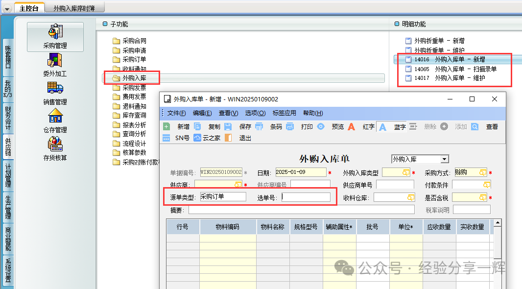 生成購貨發(fā)票,(采購入庫)流程到此結(jié)束。 也可以從主控臺進入,(采購管理)——(外購入庫)——(外購入庫--新增/維護),在新增這里自己手動關(guān)聯(lián)采購訂單,在維護里面查詢修改外入庫單。功能和采購訂單一樣,這里不重復講解了。 還可以從主控臺,(倉存管理)——(驗收入庫)——(外購入庫--新增/維護),功能是一樣的,只是打開路徑不同,這里也不重復講解了。 總結(jié)一下 金蝶k3的(采購入庫)操作: 1.確認系統(tǒng)里有產(chǎn)品物料和供應(yīng)商代碼,沒有就先錄代碼; 2.填寫采購申請單,選擇物料代碼,填寫數(shù)量; 3.從采購申請單關(guān)聯(lián)到采購訂單,選擇供應(yīng)商代碼,錄入價格,修改數(shù)量等信息; 4.從采購訂單關(guān)聯(lián)到外購入庫單,驗收入庫,生成購貨發(fā)票; 采購入庫流程結(jié)束 還有退貨流程,下篇再分享 閱讀原文:原文鏈接 點晴模切ERP更多信息:http://moqie.clicksun.cn,聯(lián)系電話:4001861886 該文章在 2025/5/28 10:18:07 編輯過 |