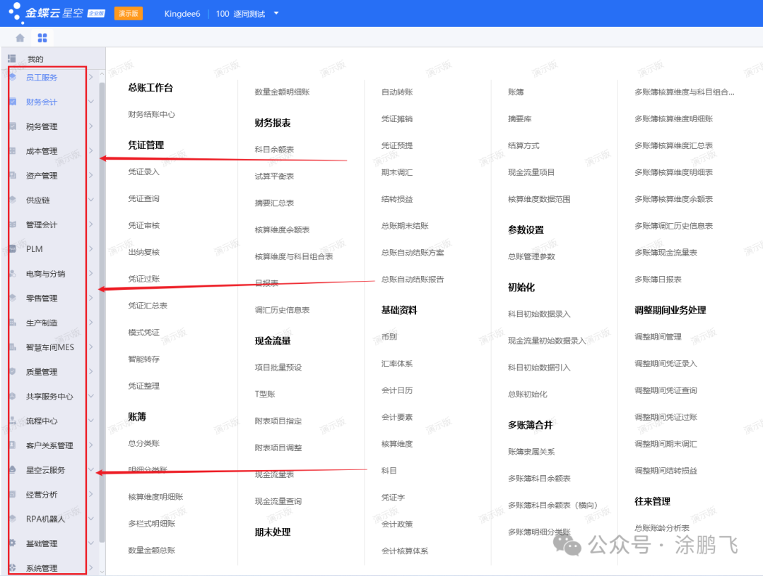 我們先看下金蝶云星空的主頁(yè)和菜單界面