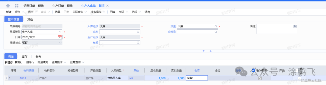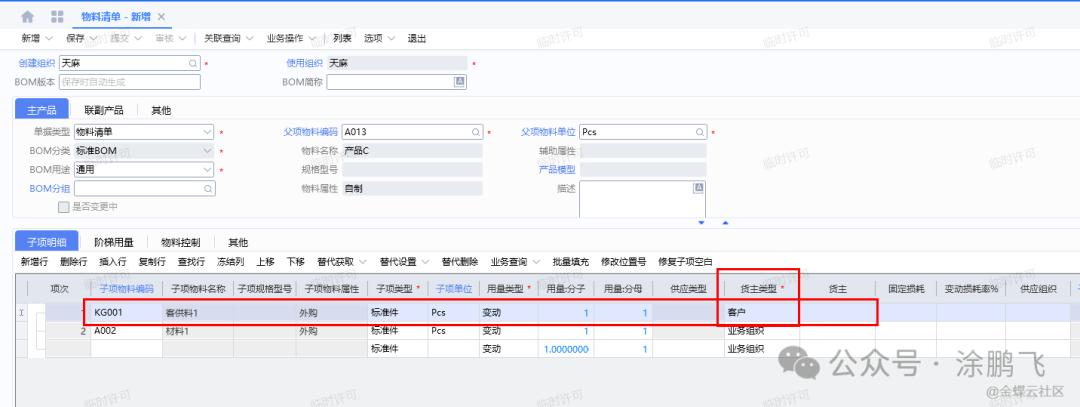 受托加工業(yè)務(wù)是指企業(yè)接受外部客戶委托,對(duì)客戶提供原材料或半成品進(jìn)行加工處理的一種業(yè)務(wù)模式。 在系統(tǒng)操作中,受托加工業(yè)務(wù)涉及多個(gè)模塊,包括庫(kù)存管理、生產(chǎn)管理、銷售管理及成本核算??凸┝闲柰ㄟ^(guò)受托加工材料入庫(kù)單進(jìn)行管理,貨主為客戶的材料不參與企業(yè)自身的成本核算,僅管理庫(kù)存數(shù)量。生產(chǎn)過(guò)程中,企業(yè)需記錄領(lǐng)料、人工費(fèi)等成本,并最終通過(guò)銷售出庫(kù)單和應(yīng)收單完成與客戶的結(jié)算。此業(yè)務(wù)模式的關(guān)鍵在于明確區(qū)分客供料與企業(yè)自供材料,并確保貨主信息準(zhǔn)確無(wú)誤。 1、概述外部公司將原材料或是半成品外發(fā)給本公司進(jìn)行加工,針對(duì)本公司來(lái)說(shuō),這種業(yè)務(wù)就叫做受托加工業(yè)務(wù)。 Cloud系統(tǒng)中受托加工整體業(yè)務(wù)流程涉及六個(gè)模塊,庫(kù)存管理、生產(chǎn)管理、銷售管理、存貨核算及產(chǎn)品成本核算。 受托加工的生產(chǎn)過(guò)程可能涉及兩種類型的料,一種是受托入庫(kù)的客供料,一種是加工企業(yè)自有材料。本例假設(shè)這兩種材料都有使用到。 案例:本公司接受客戶的委托加工業(yè)務(wù),并約定以每件8元的加工費(fèi)進(jìn)行結(jié)算。倉(cāng)庫(kù)接收到客戶發(fā)給本公司的加工主材料客供料,數(shù)量1000pcs。生產(chǎn)車間進(jìn)行加工材料的生產(chǎn)領(lǐng)料。領(lǐng)料包含客戶的客供料,還需領(lǐng)用本公司的庫(kù)存中的輔料材料。后續(xù)完工入庫(kù)1000pcs產(chǎn)成品C,其中發(fā)生人工費(fèi)若干。加工完成的C產(chǎn)品發(fā)出給客戶并確認(rèn)應(yīng)收款項(xiàng)。 2、基礎(chǔ)資料倉(cāng)庫(kù)受托加工材料入庫(kù)的時(shí)候可以入庫(kù)本公司普通倉(cāng)庫(kù),有些企業(yè)為了區(qū)分不同的客戶的材料,也可能設(shè)立單獨(dú)的客戶倉(cāng)庫(kù)用于存放客供料,可新增客戶倉(cāng)庫(kù),如圖所示: BOM生產(chǎn)的產(chǎn)品,如明確都是來(lái)料加工的情況,一般大部分主要材料是客供料,部分輔料可能是企業(yè)提供的,可在BOM中維護(hù)設(shè)置好對(duì)應(yīng)的貨主類型。如果產(chǎn)品既有可能是完全自制,也有可能是來(lái)料加工的情況,可分兩個(gè)不同情況設(shè)置對(duì)用的BOM版本信息,也可在BOM中不指定貨主類型信息,在后續(xù)實(shí)際生成業(yè)務(wù)中生產(chǎn)訂單生成用料清單之后,在用料清單中修改貨主信息及發(fā)貨倉(cāng)庫(kù)信息即可。 本例已知客供料信息,直接在BOM中設(shè)置對(duì)應(yīng)的貨主類型,BOM設(shè)置如圖所示: 3、銷售訂單受托加工業(yè)務(wù)一般可從銷售訂單開(kāi)始,銷售訂單新增可選擇受托加工類型的銷售訂單,可按需考慮是否勾選【生成受托加工材料清單】,如未勾選,可直接從銷售訂單下推受托加工材料入庫(kù)單,系統(tǒng)會(huì)按照BOM中貨主類型為客戶的材料展開(kāi)入庫(kù)。如勾選,可通過(guò)訂單下推受托加工材料收料單,然后根據(jù)生成的材料清單下推受托加工材料入庫(kù)單。