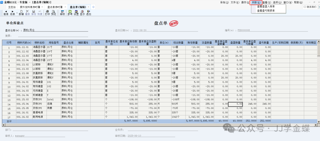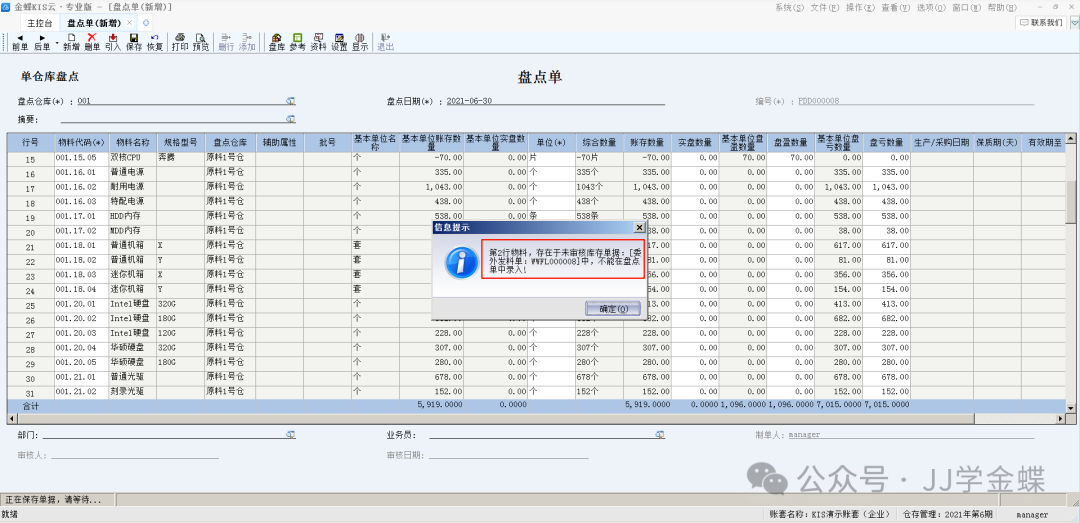 [點晴模切ERP]金蝶KIS專業(yè)版盤點單操作流程
