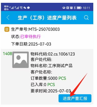 ![]() ![]() ERP如何進(jìn)行開(kāi)始計(jì)時(shí)-匯報(bào)結(jié)束操作? 操作步驟: 打開(kāi)點(diǎn)晴業(yè)務(wù)通APP,點(diǎn)擊"生產(chǎn)(工序)進(jìn)度產(chǎn)量列表",進(jìn)入界面后,如下圖所示: