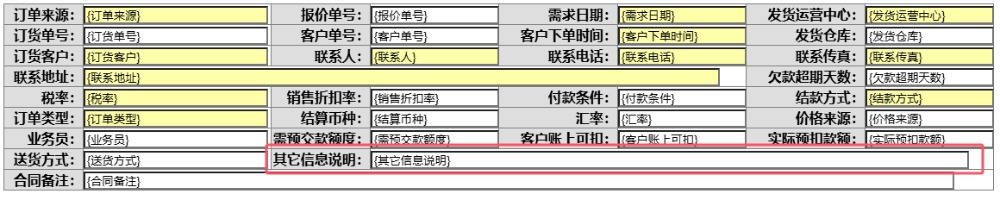 ?以上說明了如何對銷售訂單添加新的自定義字段,下面說明如何在送貨單打印模板中調(diào)取并顯示以上自定義字段。