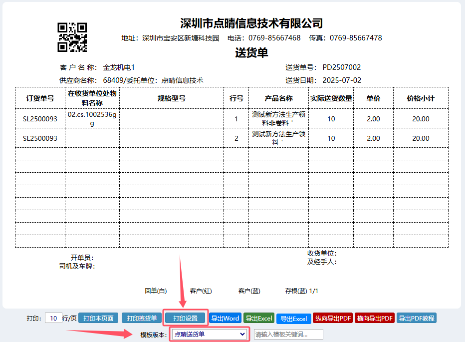選中需要調(diào)取并顯示剛剛增加字段的模板版本,然后點擊“打印設(shè)置”按鈕: