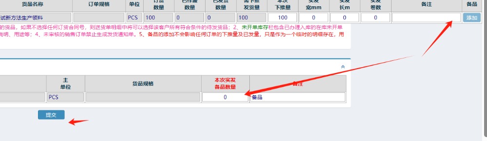 點(diǎn)晴模切ERP-新增送貨單時(shí)添加備品的特別說(shuō)明