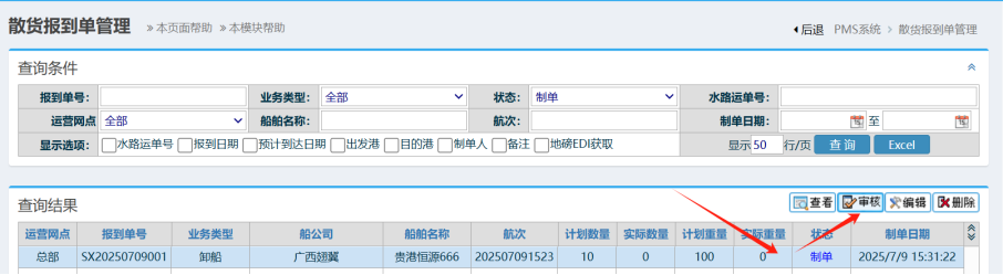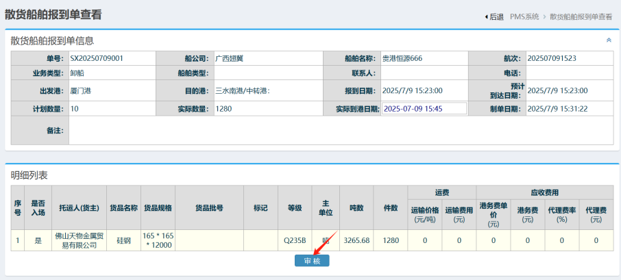 [點(diǎn)晴模切ERP]點(diǎn)晴PMS-審核散貨船舶報(bào)到單-操作流程