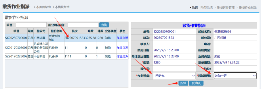:點(diǎn)晴PMS-散貨作業(yè)指派-操作流程