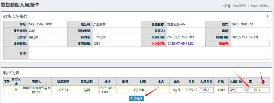 [點晴模切ERP]點晴PMS-散貨卸船入場-操作流程