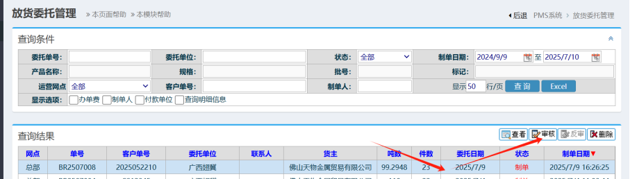 [點(diǎn)晴模切ERP]點(diǎn)晴PMS-審核散貨放貨委托單-操作流程