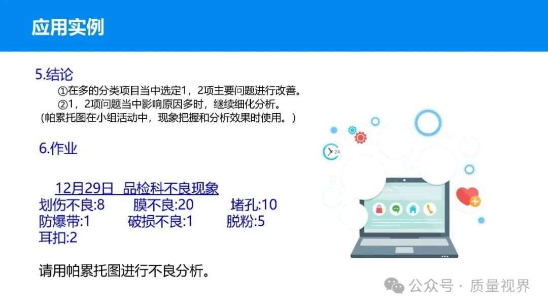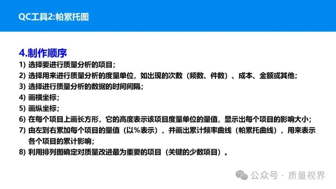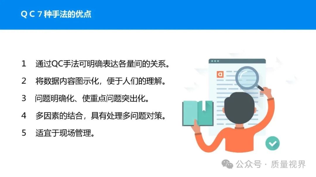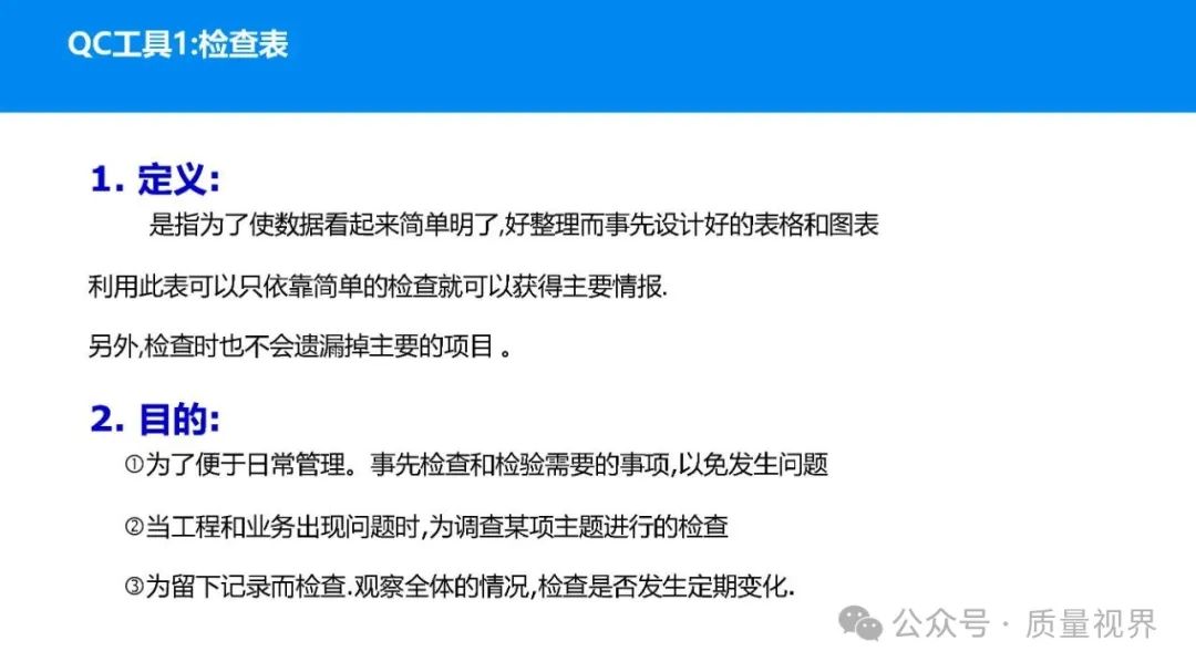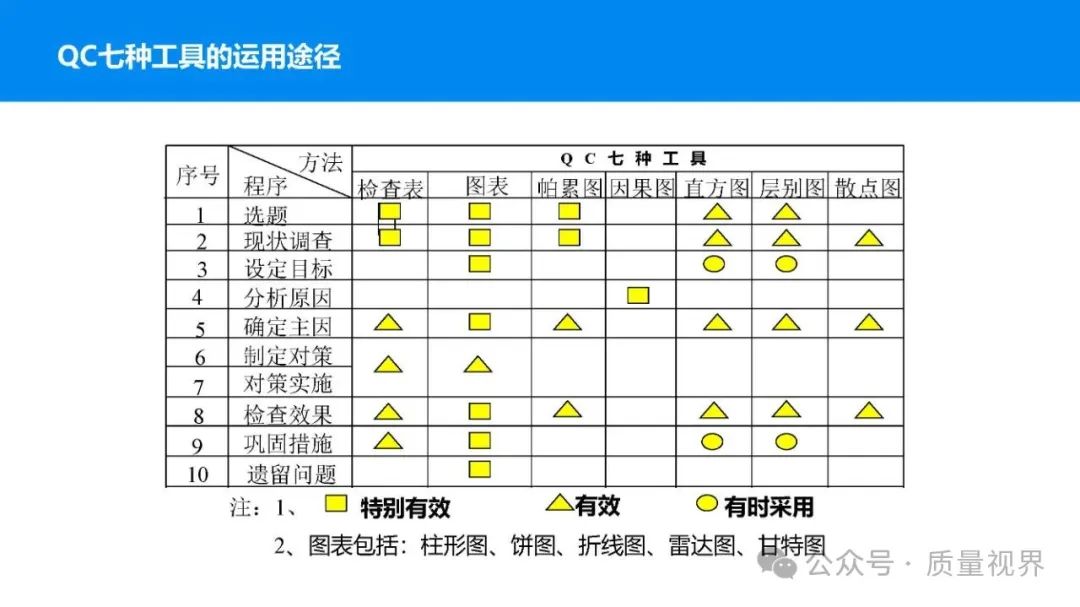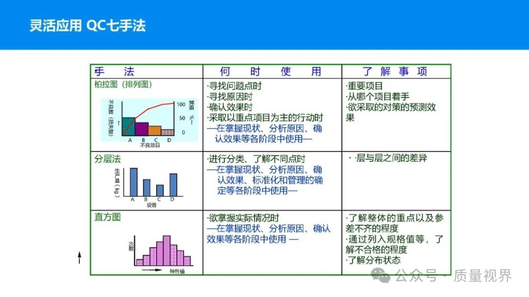 在質(zhì)量管理領(lǐng)域,七大工具是提升產(chǎn)品質(zhì)量、優(yōu)化流程的重要手段。它們操作簡便、實(shí)用性強(qiáng),能幫助我們從復(fù)雜的數(shù)據(jù)和現(xiàn)象中找到關(guān)鍵問題,為質(zhì)量改進(jìn)提供明確方向。以下將逐一介紹這七大工具。檢查表是一種為收集和整理數(shù)據(jù)而設(shè)計(jì)的表格,它能讓數(shù)據(jù)收集過程更有條理,避免遺漏關(guān)鍵信息。可以系統(tǒng)地收集特定問題的數(shù)據(jù),為后續(xù)的分析提供可靠依據(jù)。比如在生產(chǎn)車間,可用于記錄每天產(chǎn)品的不合格項(xiàng)數(shù)量及類型。(二)制作步驟明確收集數(shù)據(jù)的目的,比如是為了了解某產(chǎn)品的不合格原因分布。確定需要收集的數(shù)據(jù)項(xiàng)目,如不合格類型、發(fā)生時(shí)間、發(fā)生地點(diǎn)等。設(shè)計(jì)表格樣式,將數(shù)據(jù)項(xiàng)目合理排列。確定數(shù)據(jù)收集的周期和負(fù)責(zé)人。按照表格要求進(jìn)行數(shù)據(jù)填寫。某電子廠為了解手機(jī)屏幕的不合格情況,設(shè)計(jì)檢查表記錄每天的不合格類型,如劃痕、亮點(diǎn)、暗點(diǎn)等。一周后,通過檢查表數(shù)據(jù)能直觀看到劃痕問題出現(xiàn)的次數(shù)最多,為后續(xù)解決該問題提供了數(shù)據(jù)支持。柏拉圖又稱排列圖,它基于 “關(guān)鍵的少數(shù),次要的多數(shù)” 原則,將數(shù)據(jù)按重要程度排序,以柱狀圖和折線圖結(jié)合的形式展示,幫助識(shí)別主要問題。能快速找出影響質(zhì)量的主要因素,讓我們把精力集中在關(guān)鍵問題上,提高質(zhì)量改進(jìn)的效率。(二)制作步驟確定分析的問題和數(shù)據(jù)范圍,比如某產(chǎn)品的不合格原因及對應(yīng)數(shù)量。對數(shù)據(jù)進(jìn)行分類統(tǒng)計(jì),計(jì)算各類別的數(shù)量和占比。按數(shù)量從大到小排序。繪制柱狀圖,橫軸為類別,縱軸為數(shù)量;再繪制折線圖,縱軸為累計(jì)占比。在累計(jì)占比 80% 左右的位置畫一條橫線,橫線左側(cè)的類別即為主要問題。某服裝加工廠對襯衫的不合格品進(jìn)行統(tǒng)計(jì),發(fā)現(xiàn)線頭、尺寸偏差、面料瑕疵、紐扣松動(dòng)等問題。通過制作柏拉圖,發(fā)現(xiàn)線頭和尺寸偏差的累計(jì)占比達(dá)到 80%,于是重點(diǎn)針對這兩個(gè)問題進(jìn)行改進(jìn),有效降低了不合格率。魚骨圖又稱因果圖,因其形狀像魚骨而得名。它將影響質(zhì)量的因素按類別進(jìn)行梳理,找出問題的根本原因。能全面、系統(tǒng)地分析問題產(chǎn)生的原因,避免遺漏,幫助找到根本解決辦法,而不是只解決表面問題。(二)制作步驟明確需要分析的質(zhì)量問題,寫在魚骨的 “魚頭” 位置。確定主要原因類別,通常包括人、機(jī)、料、法、環(huán)、測等,作為魚骨的主骨。針對每個(gè)主骨,進(jìn)一步分析次要原因,作為子骨。繼續(xù)深入分析,找出更具體的原因,直到能采取措施解決為止。對分析出的原因進(jìn)行篩選,確定根本原因。某食品廠生產(chǎn)的餅干出現(xiàn)口感偏硬的問題,用魚骨圖分析。從人(操作工人烘焙時(shí)間控制不當(dāng))、機(jī)(烤箱溫度不穩(wěn)定)、料(面粉含水量過高)、法(烘焙工藝參數(shù)不合理)、環(huán)(車間濕度大)、測(溫度檢測儀器不準(zhǔn))等方面入手,最終發(fā)現(xiàn)烤箱溫度不穩(wěn)定和烘焙工藝參數(shù)不合理是根本原因。直方圖是將數(shù)據(jù)按一定區(qū)間分組,以矩形的高度表示每組數(shù)據(jù)的頻數(shù),從而展示數(shù)據(jù)的分布狀態(tài)。能直觀地反映數(shù)據(jù)的分布特征,如數(shù)據(jù)的集中程度、離散程度、是否存在異常值等,幫助判斷生產(chǎn)過程是否穩(wěn)定。(二)制作步驟收集數(shù)據(jù),確定數(shù)據(jù)的數(shù)量,一般建議不少于 50 個(gè)。找出數(shù)據(jù)中的最大值和最小值,計(jì)算極差(最大值 - 最小值)。確定組數(shù)和組距,組數(shù)通常根據(jù)數(shù)據(jù)數(shù)量確定,組距 = 極差 ÷ 組數(shù)。確定每組的區(qū)間范圍,注意區(qū)間要連續(xù)且不重疊。統(tǒng)計(jì)每組數(shù)據(jù)的頻數(shù)。繪制直方圖,橫軸為數(shù)據(jù)區(qū)間,縱軸為頻數(shù)。某機(jī)械廠對零件的直徑進(jìn)行測量,得到一批數(shù)據(jù)。通過繪制直方圖,發(fā)現(xiàn)數(shù)據(jù)呈現(xiàn)正態(tài)分布,且在標(biāo)準(zhǔn)范圍內(nèi),說明生產(chǎn)過程穩(wěn)定。若直方圖出現(xiàn)偏態(tài)或有數(shù)據(jù)超出標(biāo)準(zhǔn)范圍,則表明生產(chǎn)過程存在問題,需及時(shí)調(diào)整。控制圖是用于監(jiān)控生產(chǎn)過程是否處于穩(wěn)定狀態(tài)的工具,通過設(shè)置控制界限,判斷過程是否出現(xiàn)異常波動(dòng)。能及時(shí)發(fā)現(xiàn)生產(chǎn)過程中的異常情況,以便采取措施進(jìn)行調(diào)整,預(yù)防不合格品的產(chǎn)生,保證生產(chǎn)過程的穩(wěn)定性。(二)制作步驟確定需要監(jiān)控的質(zhì)量特性,如產(chǎn)品的尺寸、重量等。收集數(shù)據(jù),按時(shí)間順序或批次分組。計(jì)算每組數(shù)據(jù)的平均值(或中位數(shù))和極差(或標(biāo)準(zhǔn)差)。確定控制界限,通常包括中心線(CL)、上控制限(UCL)和下控制限(LCL),一般以 ±3 倍標(biāo)準(zhǔn)差作為控