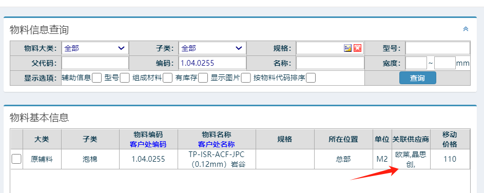選擇物料時(shí),關(guān)聯(lián)公司的資料會(huì)帶到下面的供應(yīng)商欄