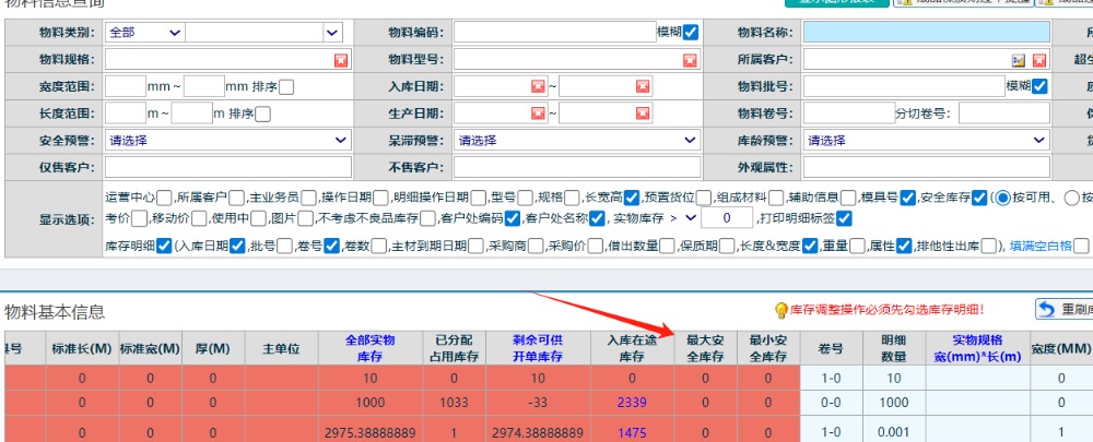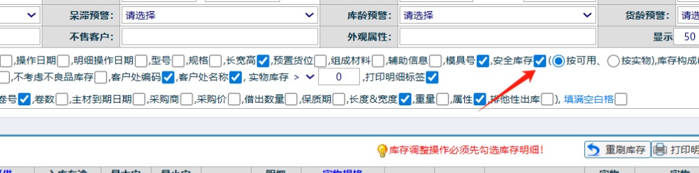 點晴模切ERP-庫存查詢界面勾上安全庫存項后行變紅