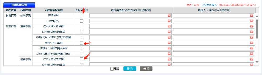 ![]() 在頁(yè)面設(shè)計(jì)最下方,有用戶(hù)權(quán)限分配的勾選項(xiàng),一般新增,查看權(quán)限為所有人的,其他都是 本人的單據(jù)才允許操作 如下圖: ![]() 點(diǎn)晴模切ERP更多信息:http://moqie.clicksun.cn,聯(lián)系電話(huà):4001861886 該文章在 2025/8/13 10:35:46 編輯過(guò) |
