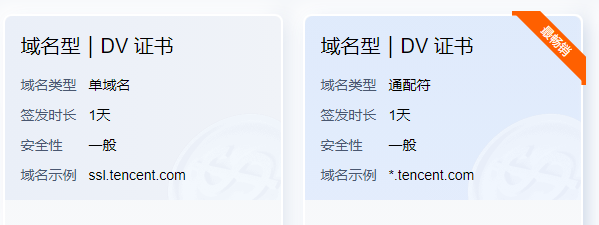 ?如果你不想使用免費(fèi)的,但是預(yù)算有限,不妨試試這幾款,價(jià)格都是從幾十元到三五百塊。特別適合個(gè)人或者初創(chuàng)小公司使用。阿里云之前介紹過,最便宜的個(gè)人版Pro數(shù)字證書地址68元1年,其次就是高性價(jià)比的DV型270.30元1年,這個(gè)價(jià)格還是很劃算的了。68元1年的在SSL控制臺(tái)選擇個(gè)人測(cè)試證書(原免費(fèi)證書)購(gòu)買,選擇個(gè)人測(cè)試證書(pro)。地址:https://t.aliyun.com/U/LGZcAR地址:https://curl.qcloud.com/VKvvWLja京東云的GeoTrust DV單域名證書價(jià)格199 元/1年,低至1.1折,性價(jià)比很高,個(gè)人站點(diǎn)或者是小程序APP部署HPPTS都是非常合適的。