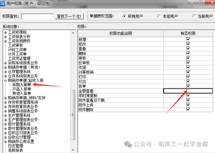 其實這只是你以為的取消而已,其實我們需要在上面的購銷存單據(jù)-驗收入庫里面也要取消,你只取消它下面的,不取消它自己,那是沒用的,應(yīng)該在這里也要取消,這個問題是特別多客戶問到的,就算把下面的采購入庫產(chǎn)品入庫其它入庫全部取消,只要上面的購銷存單據(jù)-驗收入庫沒取消,他還是會擁有所有的權(quán)限。 ![]() ![]()