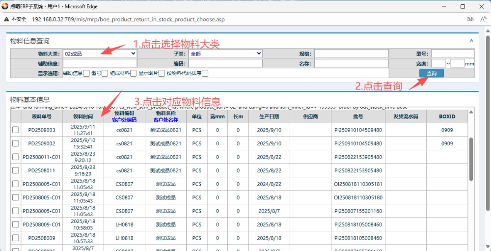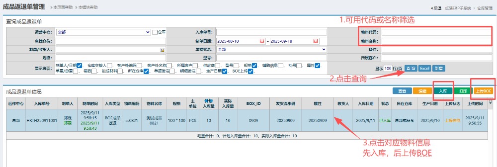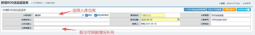 :點(diǎn)晴ERP-BOE成品返退單流程