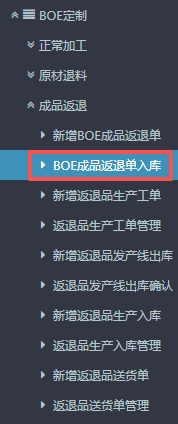 5.提交完成后,回到左側(cè)功能菜單找到“BOE成品返退單入庫”。