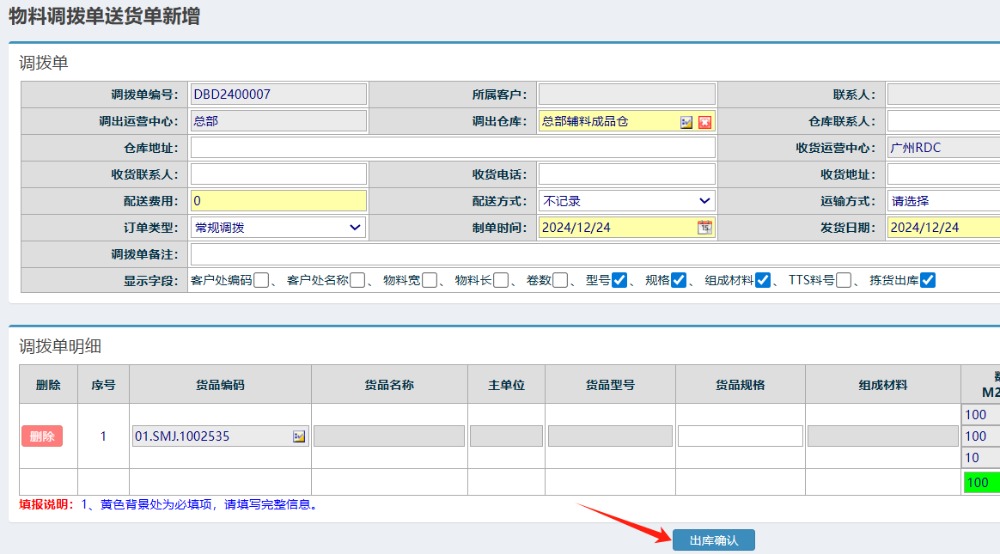 點(diǎn)晴模切ERP-調(diào)撥出庫單-發(fā)貨操作