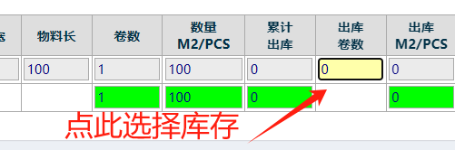 如果是卷料點(diǎn)擊卷數(shù),非卷料點(diǎn)擊數(shù)量,在彈出的窗口選擇庫存出庫