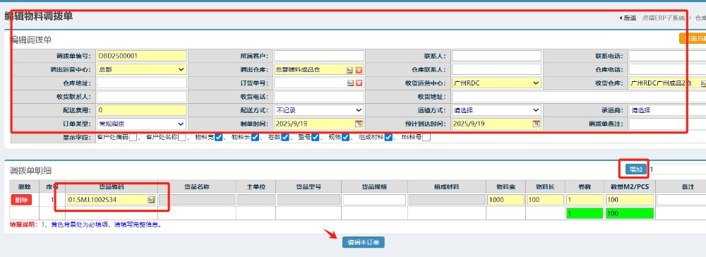 點(diǎn)晴模切ERP-調(diào)撥出庫(kù)單-編輯操作