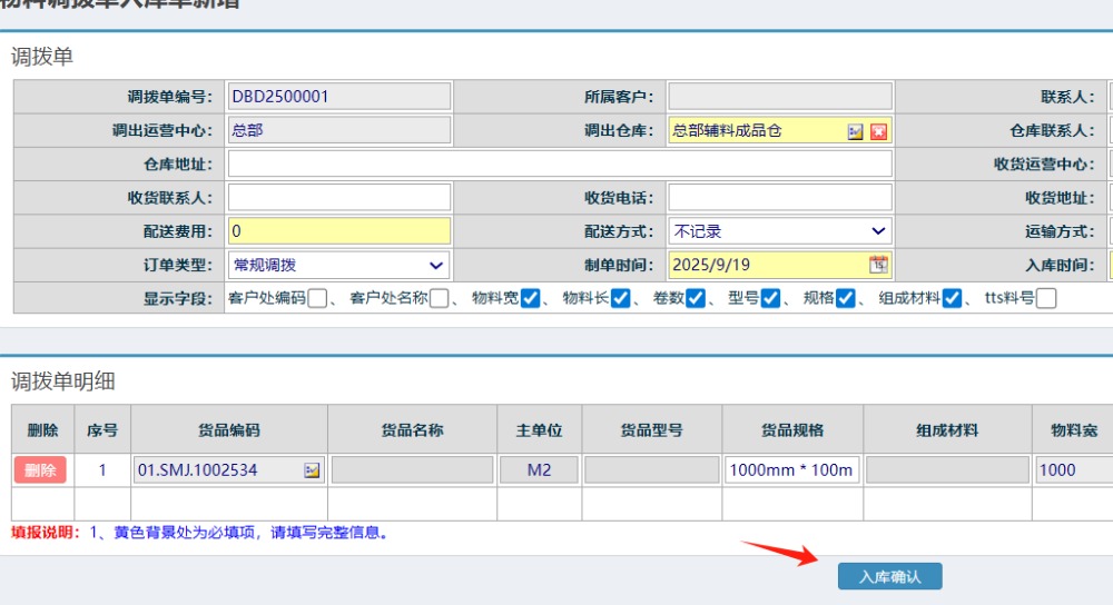 點(diǎn)晴模切ERP-調(diào)撥出庫(kù)單-入庫(kù)操作