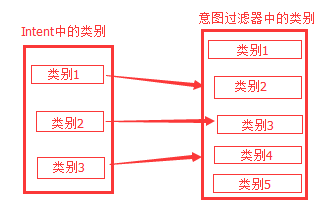 對應(yīng)<intent-filter>中的<category />標(biāo)簽; (1)Intent中的類別必須全部匹配<intent-filter>中的<category />,但是<intent-filter>中多余的<category />將不會導(dǎo)致匹配失敗。 例如:Intent中有3個類別,而意圖過濾器中定義了5個,如果Intent中的3個類別都與過濾器中的匹配,那么過濾器中的另外2個,將不會導(dǎo)致類別測試失敗。