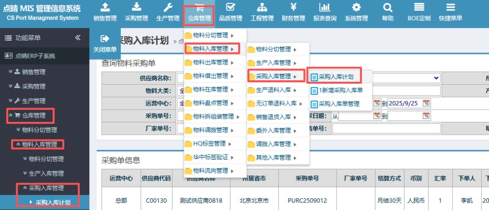 點(diǎn)晴模切ERP-采購入庫計(jì)劃操作流程