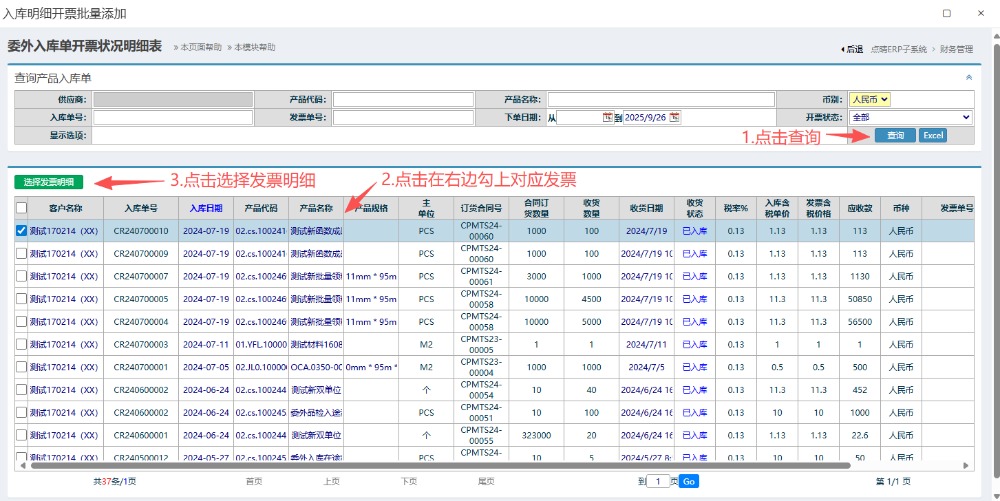 點晴模切ERP-委外入庫發(fā)票-操作流程