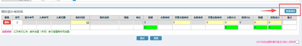 3.上面信息填好之后來到下方,點擊右邊的“批量增加”,然后會彈出發(fā)票明細窗口界面