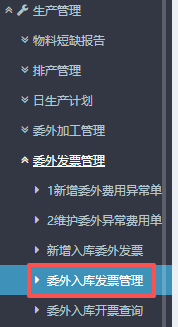5.提交之后,可以到左側功能菜單里找到“委外入庫發(fā)票管理