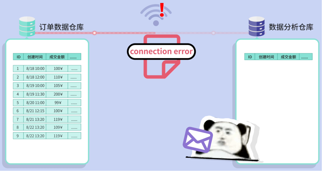 第二天一早,你還沒(méi)到公司,就收到了運(yùn)營(yíng)小姐姐的奪命連環(huán) call:“小阿巴!出大事了!昨天晚上的數(shù)據(jù)同步失敗了,現(xiàn)在老板還沒(méi)看到昨天的數(shù)據(jù),他正在會(huì)議室發(fā)火呢!”