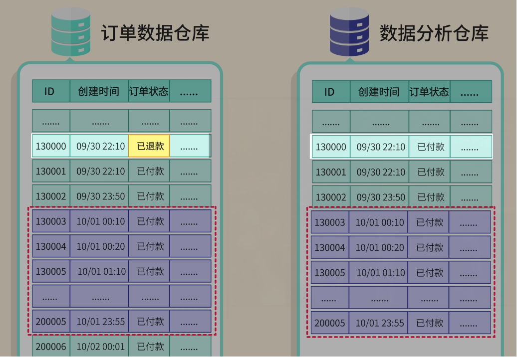 如果使用訂單創(chuàng)建時(shí)間作為增量同步的分界標(biāo)志,只能同步新增的訂單,但是訂單狀態(tài)的更新不會(huì)同步!