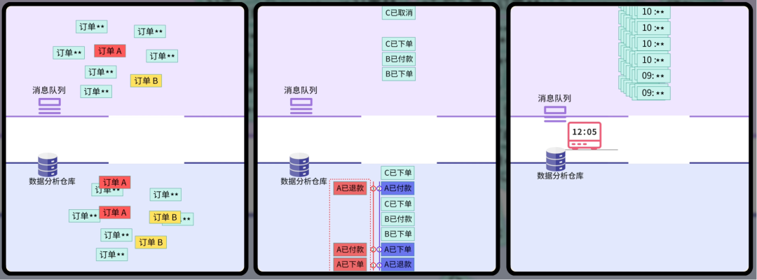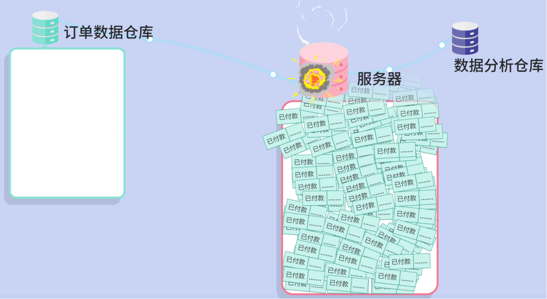 你正在和新來(lái)的實(shí)習(xí)生阿坤吹牛皮,沒(méi)想到瞬間產(chǎn)生了大量訂單,像洪水一般,讓你的實(shí)時(shí)同步系統(tǒng)出現(xiàn)了各種異常: