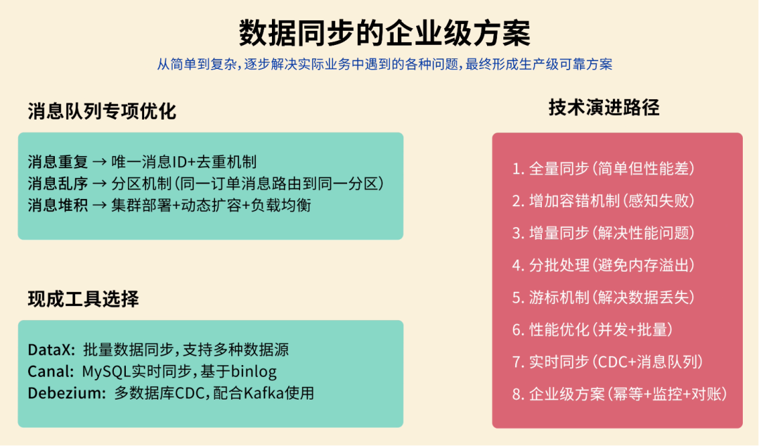 阿坤看著你的代碼接著說(shuō):“不是哥,做個(gè)數(shù)據(jù)同步要這么麻煩么?DataX、Canal、Debezium,這么多現(xiàn)成的企業(yè)級(jí)數(shù)據(jù)同步工具你不用?非要自己寫代碼?”