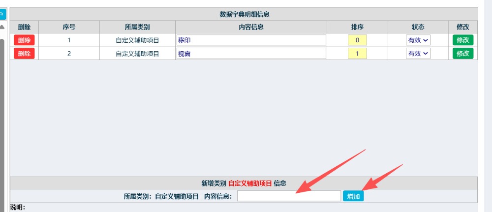 輸入自定義的項(xiàng)目?jī)?nèi)容,點(diǎn)擊添加即可,如下圖所示: