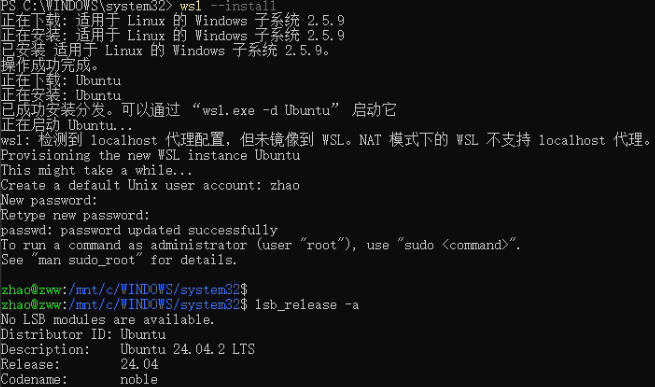 沒(méi)用使用最新的版本,又使用“wsl --install Ubuntu-22.04”命令安裝早期版本Ubuntu22。