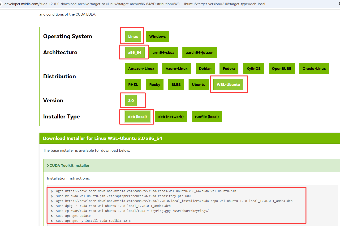需在在wsl下Ubuntu中安裝相版本的cuda-tookit,安裝步驟如下: