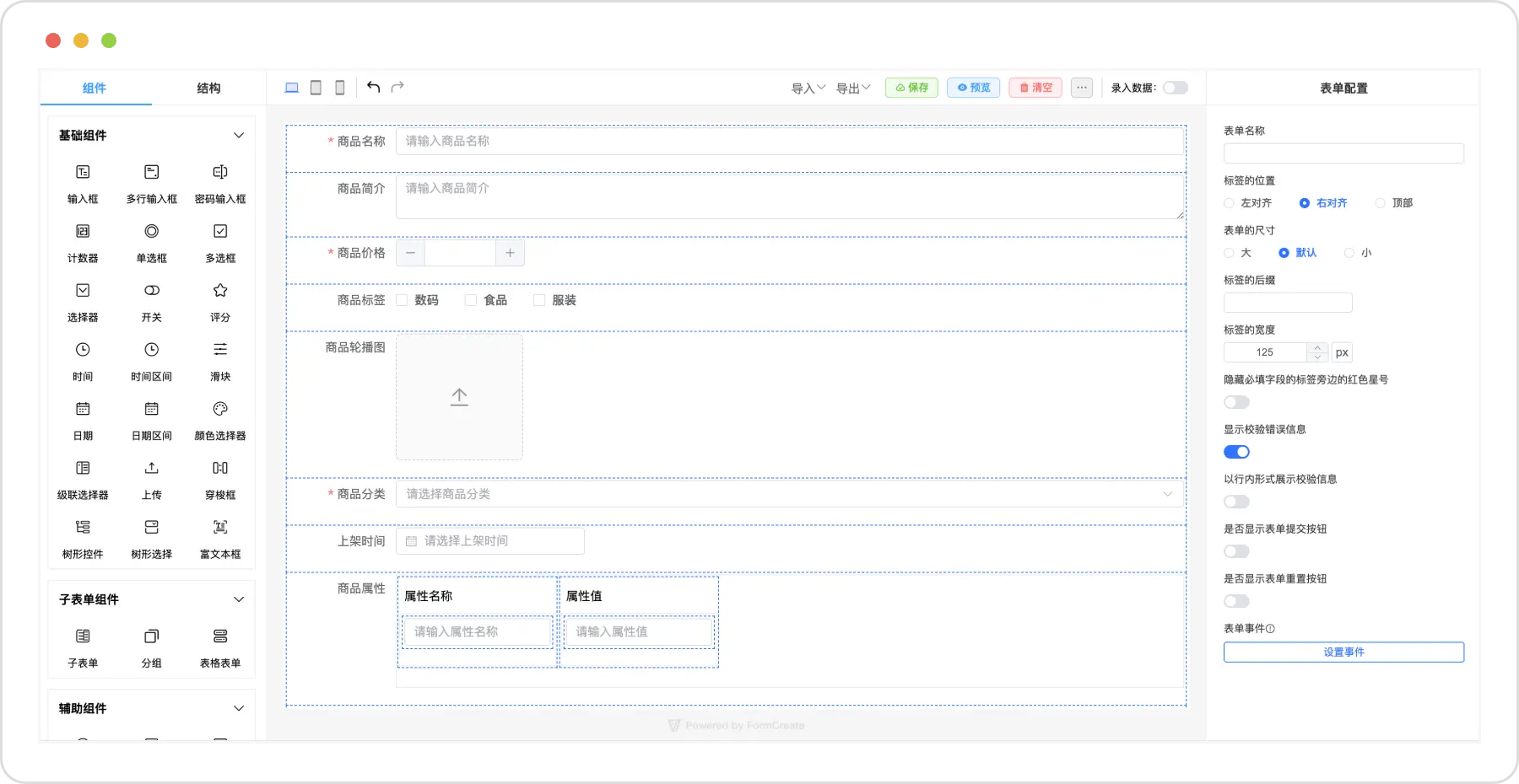 FcDesigner 是一款基于 Vue 的低代碼可視化表單設(shè)計(jì)器工具,通過數(shù)據(jù)驅(qū)動(dòng)表單渲染。可以通過拖拽的方式快速創(chuàng)建表單,提高開發(fā)者對(duì)表單的開發(fā)效率,節(jié)省開發(fā)者的時(shí)間。并廣泛應(yīng)用于在政務(wù)系統(tǒng)、OA 系統(tǒng)、ERP 系統(tǒng)、電商系統(tǒng)、流程管理等領(lǐng)域。