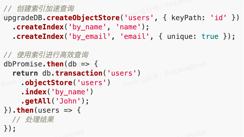 4. 強(qiáng)大的查詢與索引能力與 localStorage 的簡(jiǎn)單鍵值對(duì)不同,IndexedDB 提供了類似數(shù)據(jù)庫(kù)的高級(jí)特性: 這種索引和查詢能力使復(fù)雜數(shù)據(jù)處理變得簡(jiǎn)單高效,特別適合需要頻繁按不同條件檢索數(shù)據(jù)的應(yīng)用。 簡(jiǎn)化 IndexedDB 使用的工具庫(kù)盡管 IndexedDB 功能強(qiáng)大,但原生 API 較為復(fù)雜。以下幾個(gè)工具庫(kù)可以大幅簡(jiǎn)化使用: