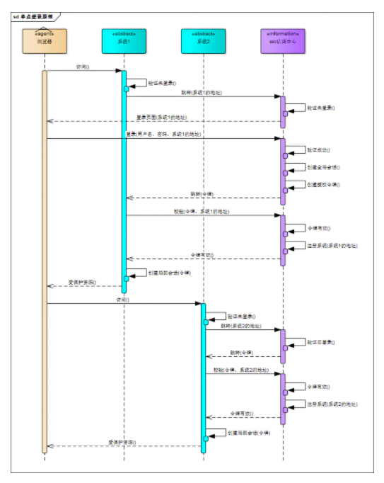 用戶訪問系統(tǒng)1的受保護(hù)資源,系統(tǒng)1發(fā)現(xiàn)用戶未登錄,跳轉(zhuǎn)至sso認(rèn)證中心,并將自己的地址作為參數(shù)