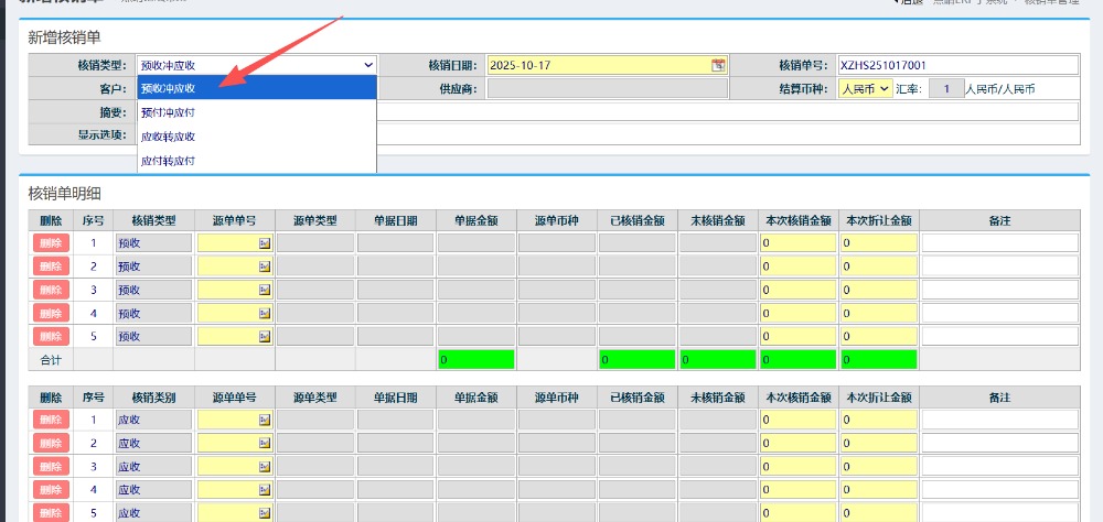 例如預(yù)付沖應(yīng)付,上面明細(xì)選擇對應(yīng)的預(yù)付單,下面明細(xì)選擇對應(yīng)的對賬發(fā)票單據(jù),