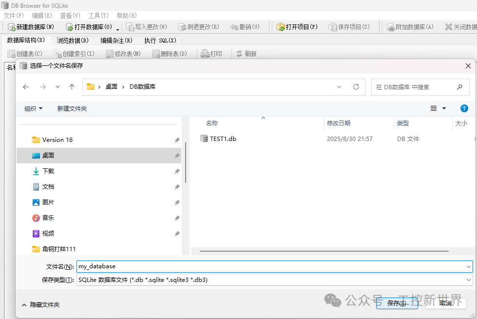 選擇一個存儲位置并為新數(shù)據(jù)庫指定一個文件名(例如:my_database.db),然后點擊 "保存"