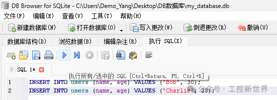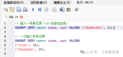 8. 在 執(zhí)行 SQL 里運行以下語句插入一些測試數(shù)據(jù)
