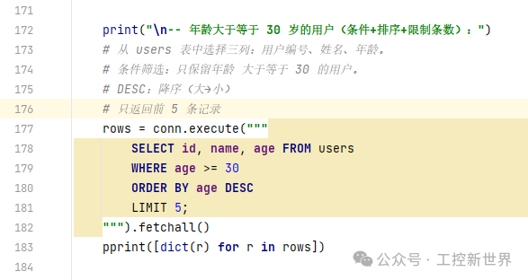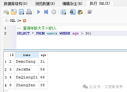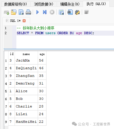 按照 age 字段進行排序,DESC 表示 降序排列(從大到?。?/span>