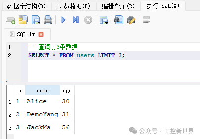 輸入數(shù)據(jù)(例如:id = 1,name = 'Alice'age = 30。