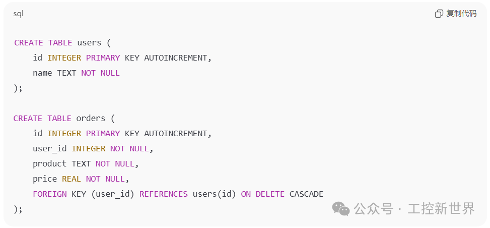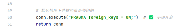?? 注意:SQLite 默認 外鍵是關(guān)閉的,要顯式打開:
