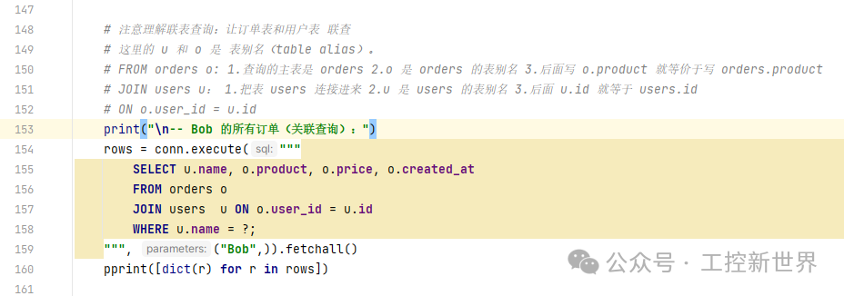 • user_id = 1 的訂單屬于 Alice(她買了 iPhone 和 AirPods)。
